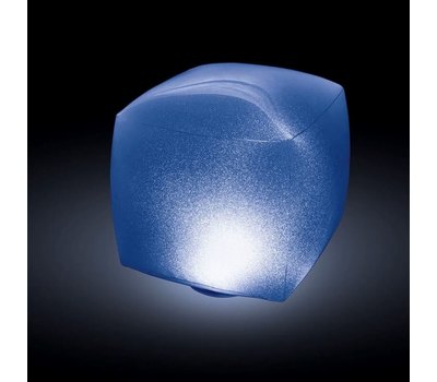Надувной плавающий светодиодный куб освещает в 4 разных цветах. Сенсорный переключатель активирует два режима освещения: статический белый свет или режим плавного изменения цвета (голубой, синий, фиолетовый, белый). Для работы требуются 3 батареи ААА (в комплект не входят). Автоматическое отключение через два часа.